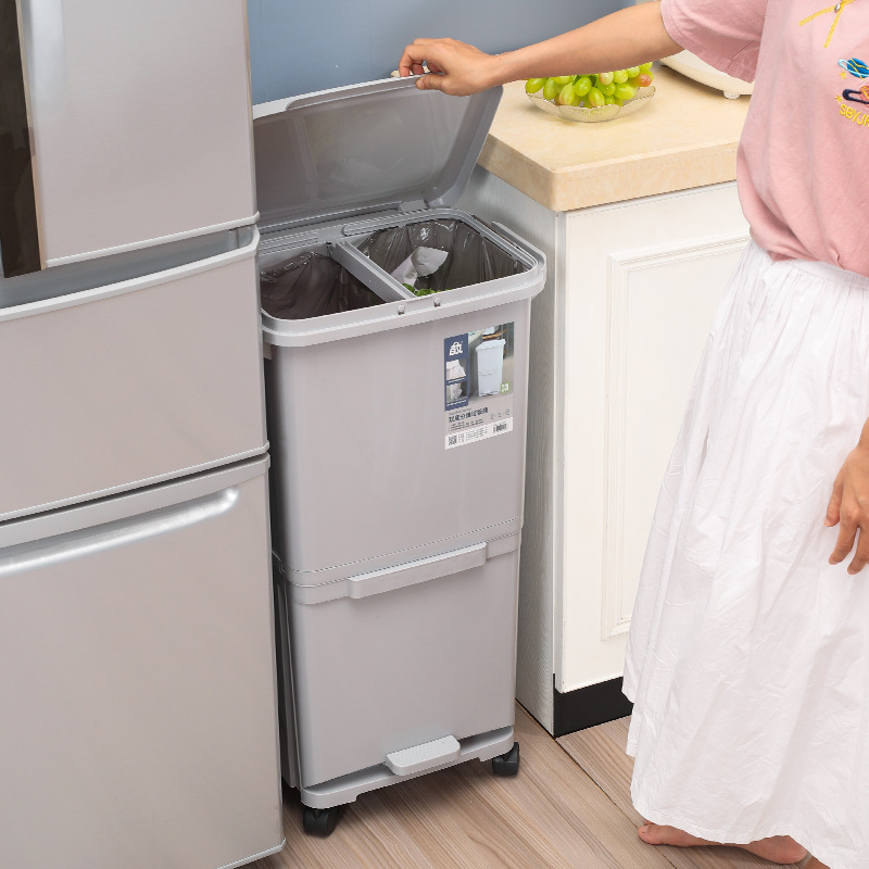 Пластиковый мусорный контейнер урна кухонная двойная Mantella 4020-СР в Большом Камне