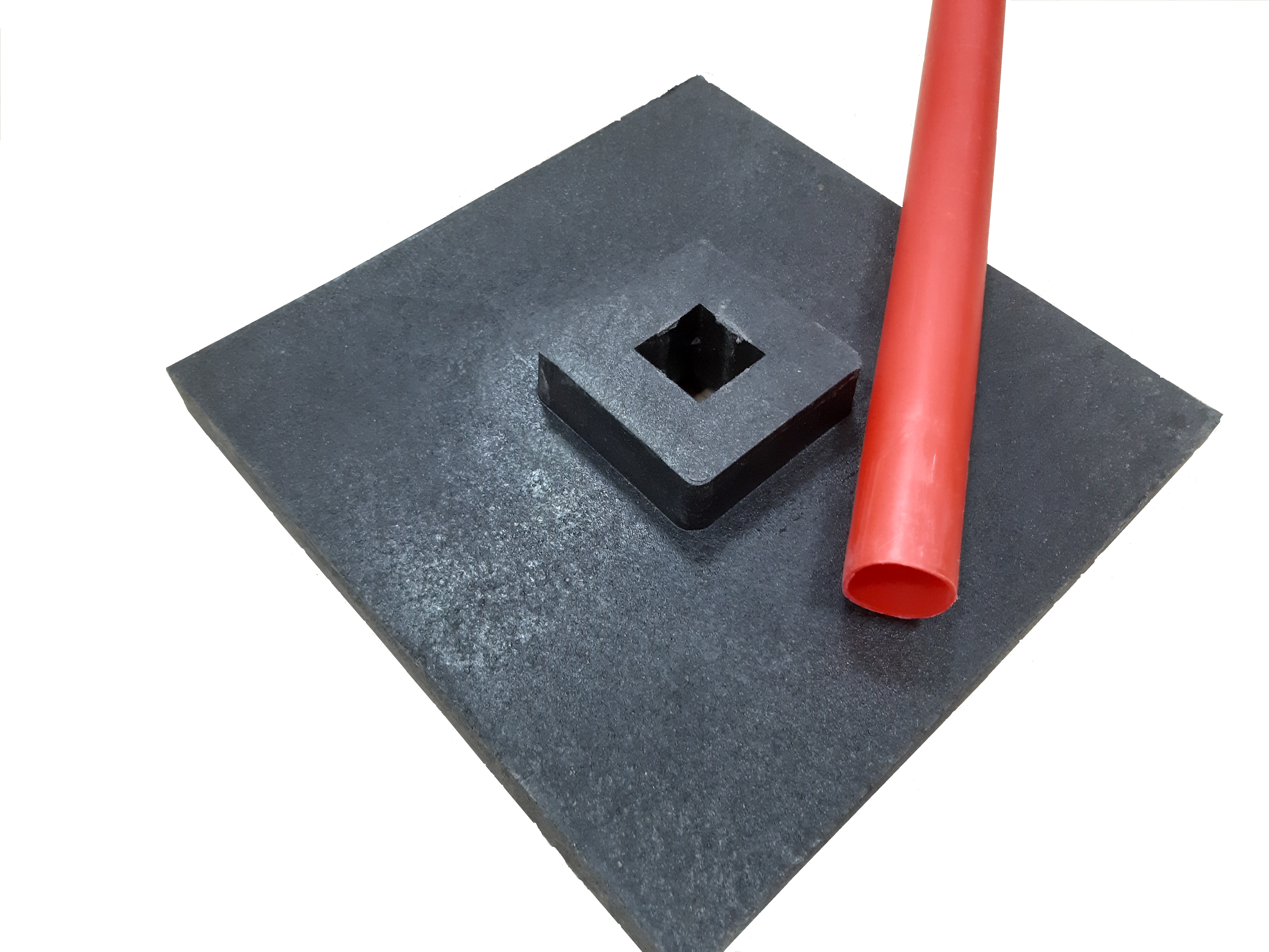 Подставка под веху полимерная предназначена для установки вешки на твердом покрытии: плитке, асфальтобетоне, щебне. Представляет собой изделие квадратной формы размером 330х330 мм