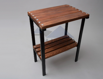 Деревянные элементы примангального стола изготовлены из сосны, покрыты морилкой и лаком.