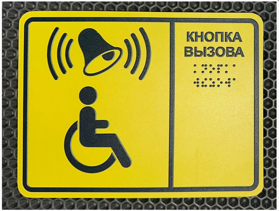 Табличка "кнопка вызова " для инвалидов желтая шрифт Брайля во Владивостоке в Большом Камне